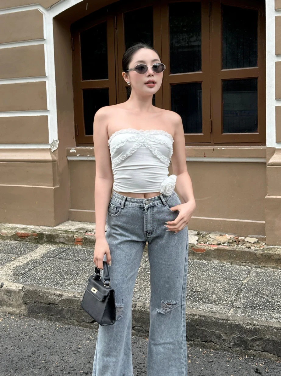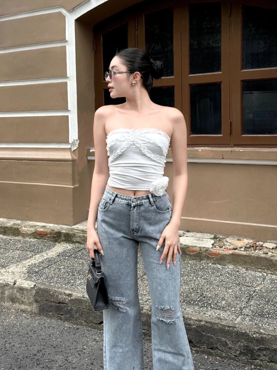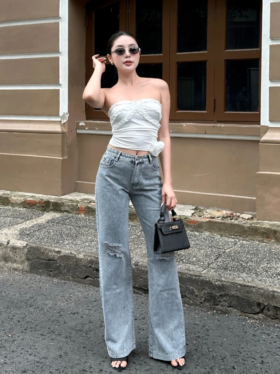 - Chi tiết rách gối táo bạo: Tạo điểm nhấn độc đáo, thể hiện phong cách trẻ trung
