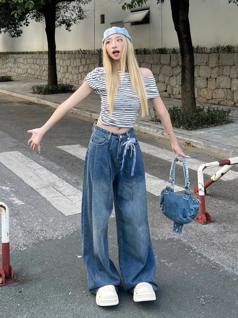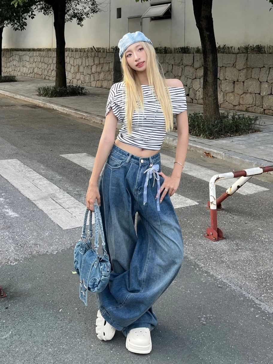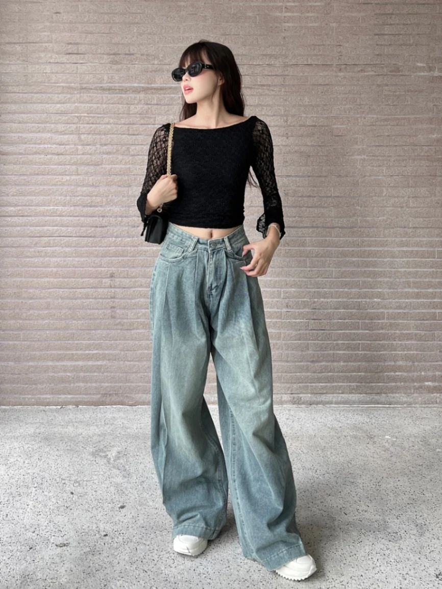 Quần Jeans Nữ Ống Rộng Xếp Ly NICOOL N41-Q58 – Phong Cách Retro Tôn Dáng