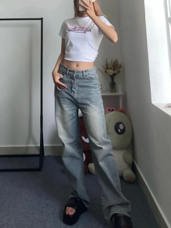 Quần Jeans Nữ Ống Suông NICOOL N41-Q7 – Xanh Dơ Cạp Cao Cá Tính