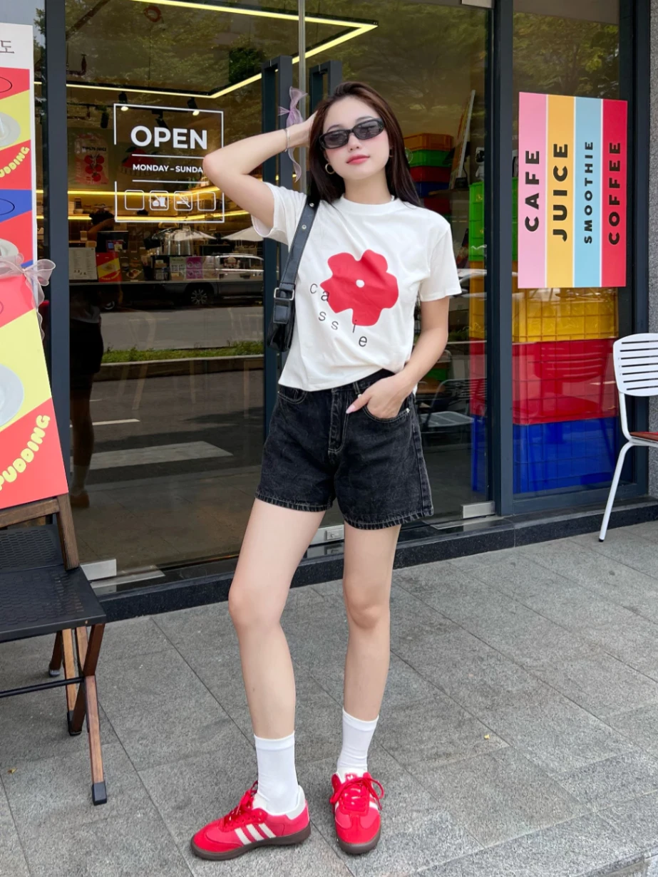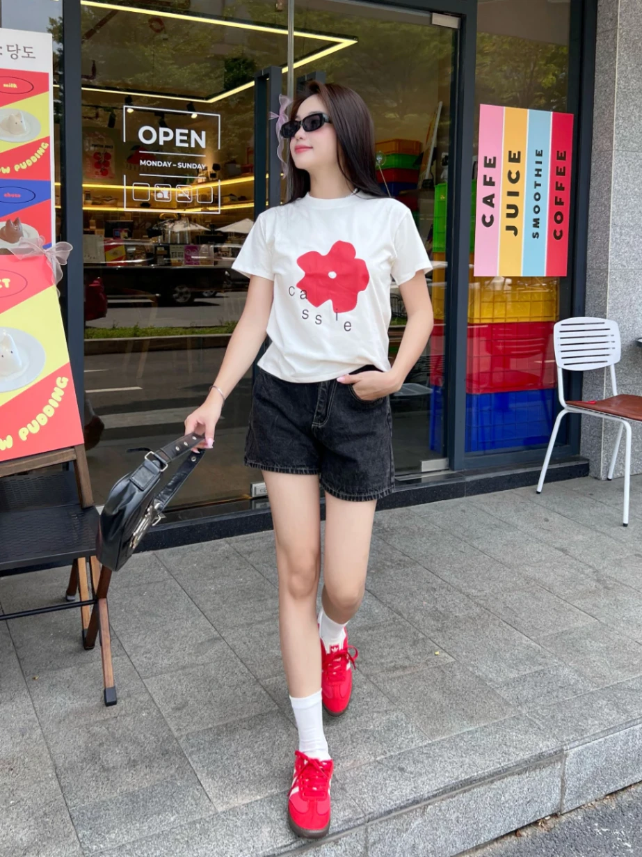 - Phong cách dạo phố: Kết hợp với áo sơ mi buộc vạt, áo hoodie và giày sneaker